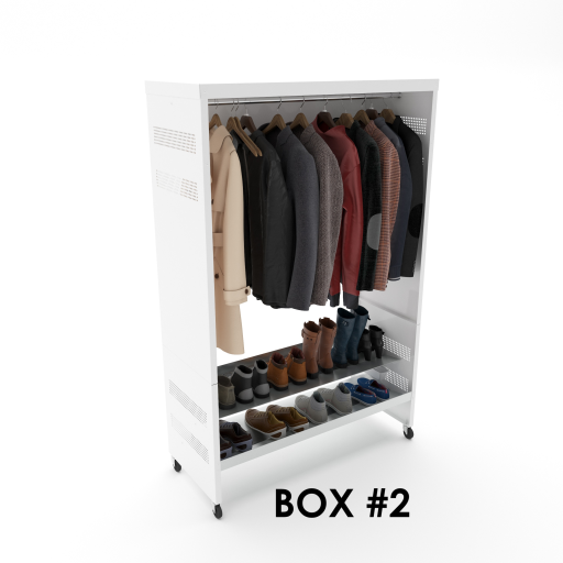 Best Clothing Rack and coat rack for community center and businesses. Easy to assemble frame metallic clothing rack and mudroom integrated with patented water draining and channeling innovative footwear shelves.